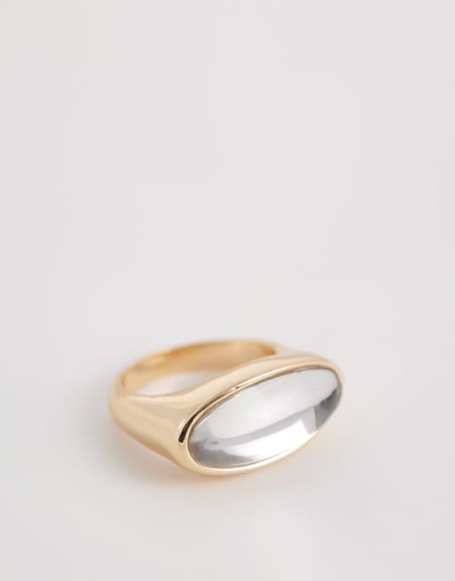 ASOS DESIGN – Goldfarbener Ring mit horizontal eingefasstem, transparentem Stein