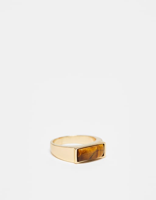 ASOS DESIGN – Goldfarbener Siegelring für den kleinen Finger mit Tigerauge-Halbedelstein