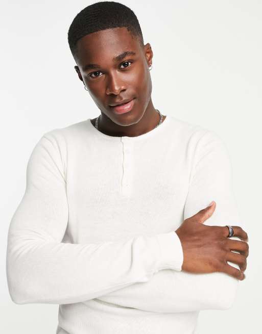 ASOS DESIGN – Grandad-Polohemd aus Baumwollstrick in Weiß