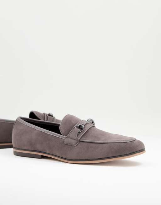 ASOS DESIGN – Graue Loafer aus Wildlederimitat mit Stegschnalle