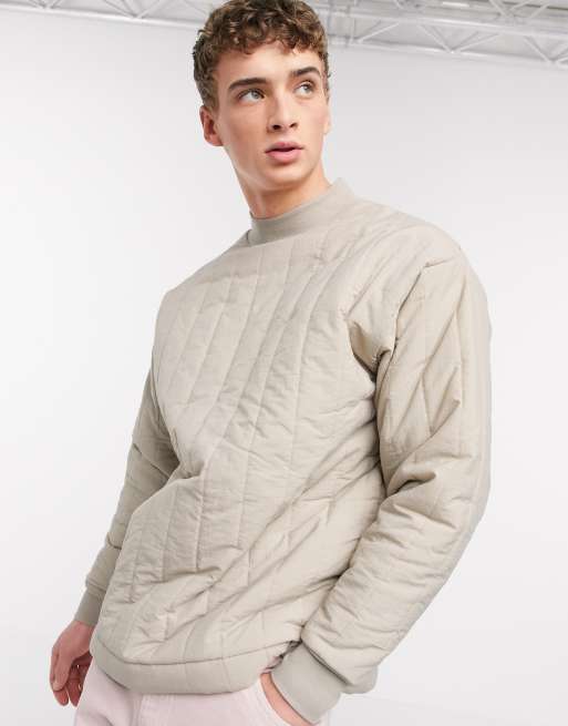 ASOS DESIGN – Graues Oversize-Sweatshirt aus gestepptem Nylon mit Stehkragen