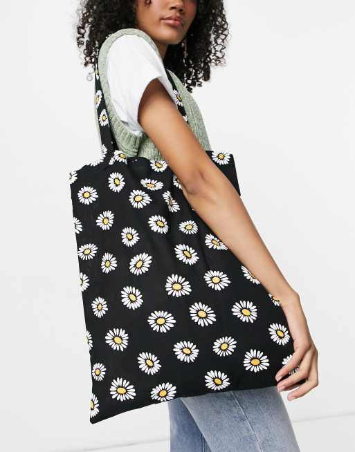 ASOS DESIGN – Große Shopper-Baumwolltasche im Stil der 90er mit Gänseblümchenprint