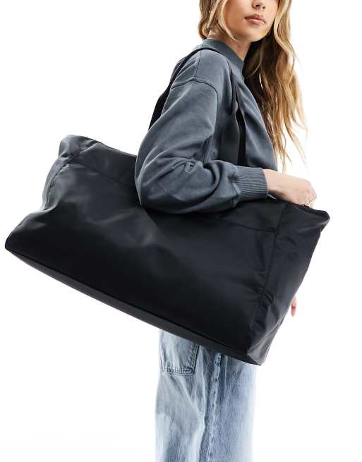 ASOS DESIGN – Große Tragetasche in Schwarz mit Reißverschluss oben und Gurtbandgriffen