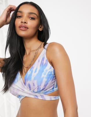 ASOS DESIGN – Größere Brust – Exklusiver Bikini in Batik-Optik mit Bügeln in geschnürter Optik
