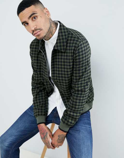 ASOS DESIGN – Grün karierte Harrington-Jacke