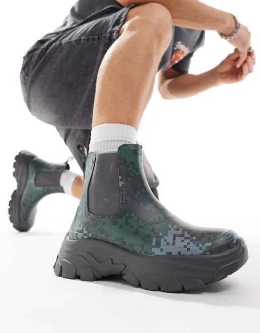 ASOS DESIGN – Gummistiefel in Anthrazit mit dicker Sohle und Monogramm-Muster