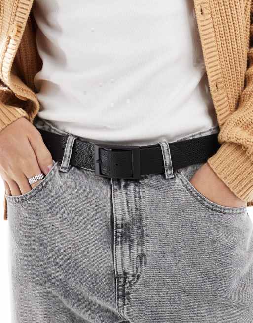 ASOS DESIGN – Gürtel aus genarbtem Kunstleder in Schwarz mit rechteckiger Schnalle