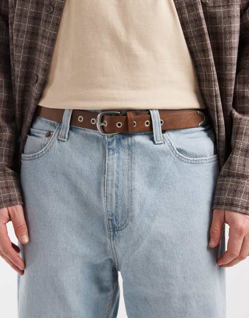 ASOS DESIGN – Gürtel in Braun mit Metallösen und Metallspitze