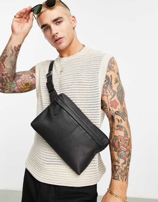 ASOS DESIGN – Gürteltasche aus schwarzem Leder mit Reißverschlussfach