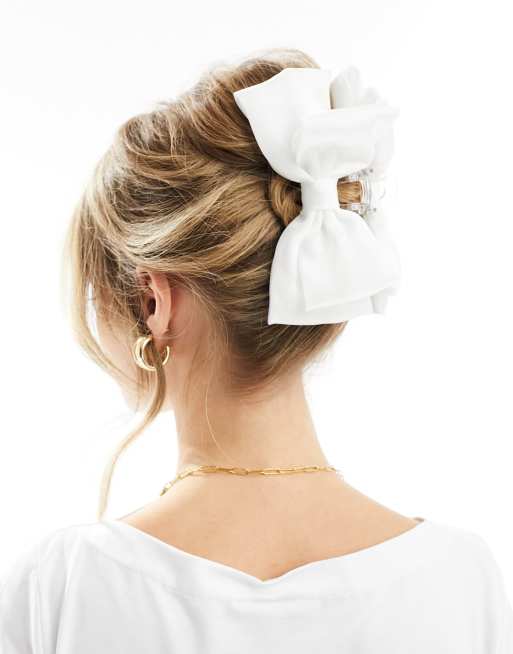 ASOS DESIGN – Haarspange in Weiß mit Stoffschleife