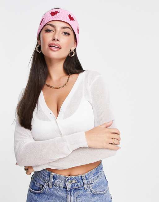ASOS DESIGN – Häkel-Haarband mit mehrfarbigem Herzmuster