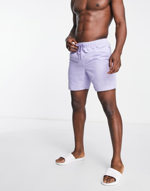 ASOS DESIGN – Halblange Badeshorts in Flieder