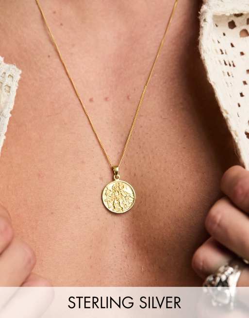 ASOS DESIGN – Halskette aus Sterlingsilber mit St. Christophorus-Anhänger und 14-karätiger Vergoldung