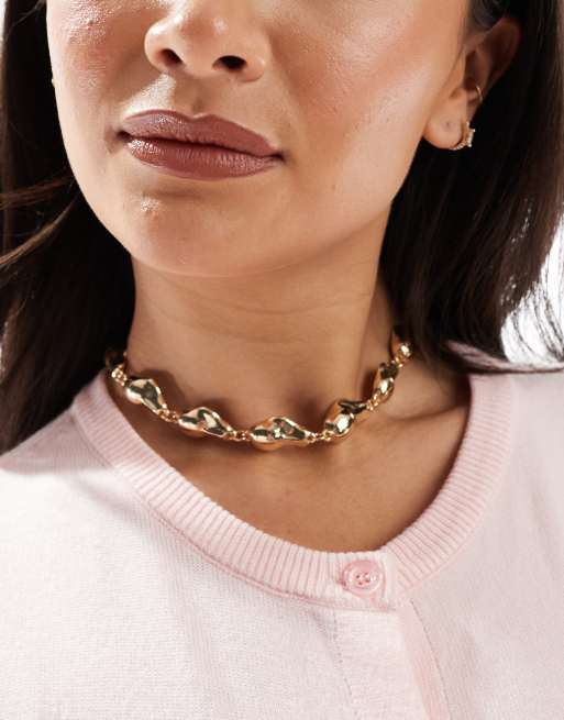 ASOS DESIGN – Halskette in Goldoptik mit Perlendetail