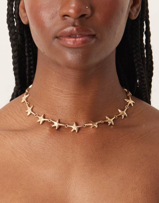 ASOS DESIGN – Halskette mit Seestern-Design in gebürstetem Goldton
