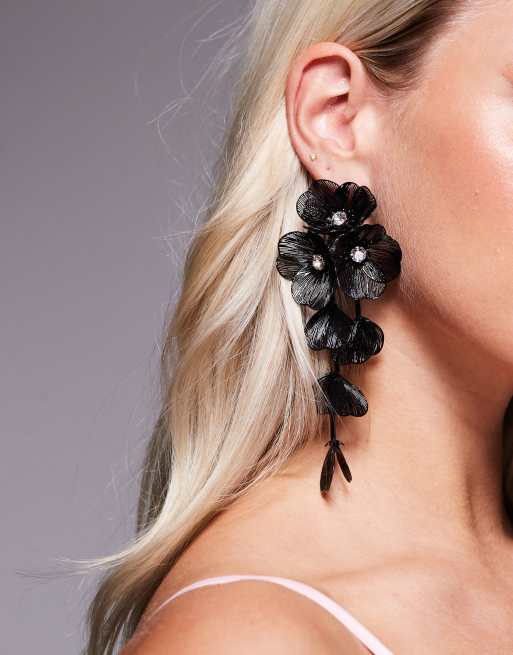 ASOS DESIGN – Hängeohrringe mit 3D-Blumendesign in Schwarz