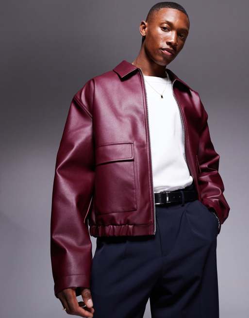 ASOS DESIGN – Harrington-Jacke aus Kunstleder in Burgunder