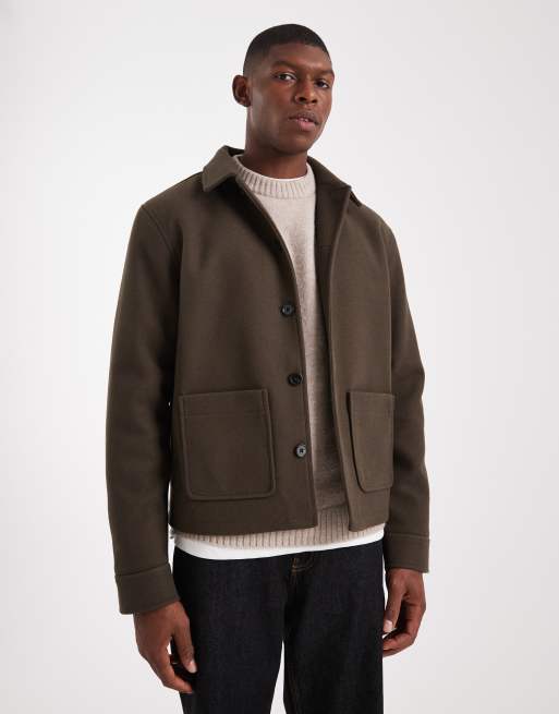 ASOS DESIGN – Harrington-Jacke aus Wollimitat in Khaki