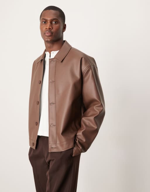 ASOS DESIGN – Harrington-Jacke in Braun aus Kunstleder