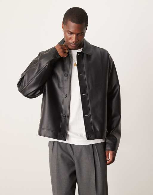 ASOS DESIGN – Harrington-Jacke in Schwarz aus Kunstleder