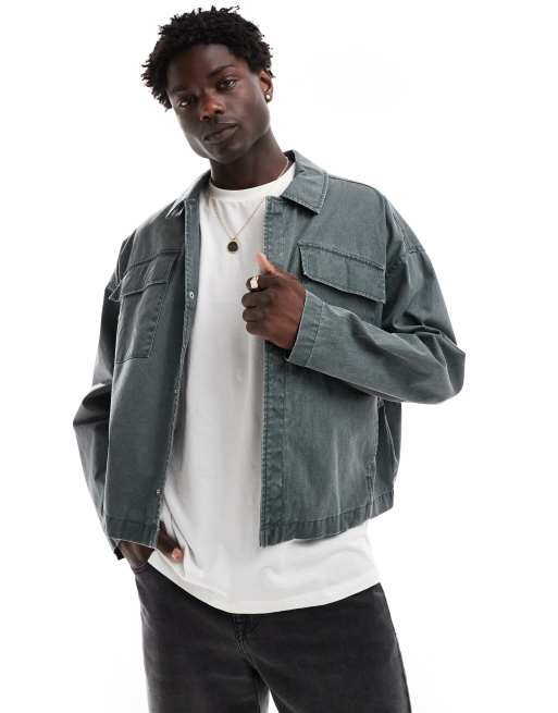 ASOS DESIGN – Harrington-Jacke in verwaschenem Grün mit Oversize-Schnitt