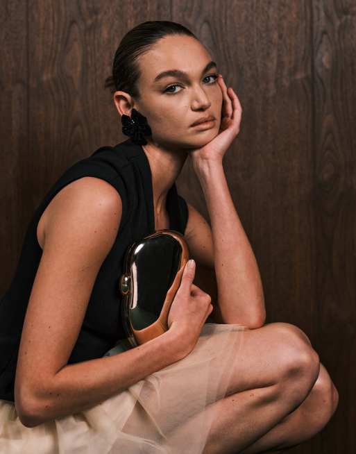 ASOS DESIGN – Hartschalen-Clutch in Gold mit abstraktem Design und Umhängeriemen