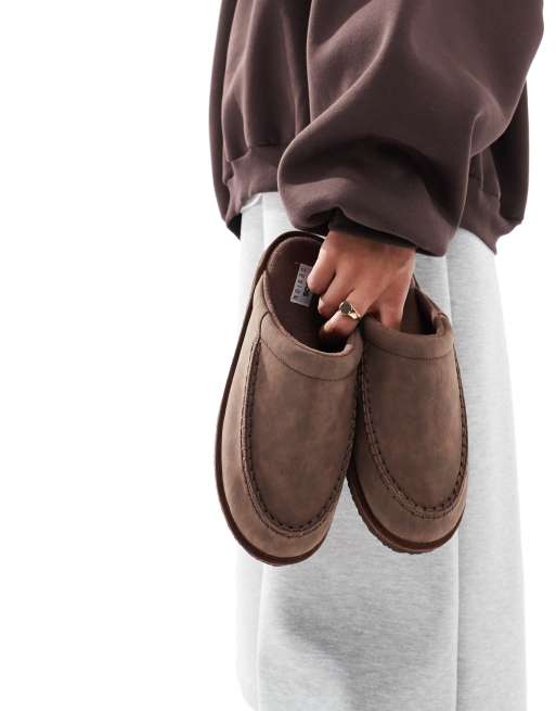 ASOS DESIGN – Hausschuhe aus Wildlederimitat in Braun mit dicker Sohle