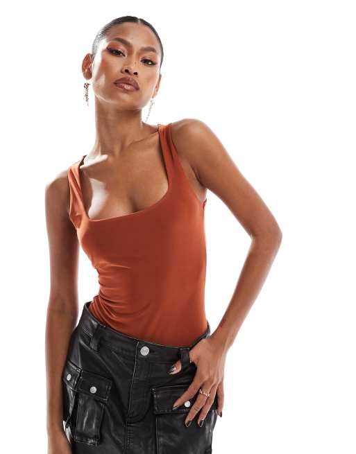 ASOS DESIGN – Hautenger Body in Rostrot mit eckigem Ausschnitt