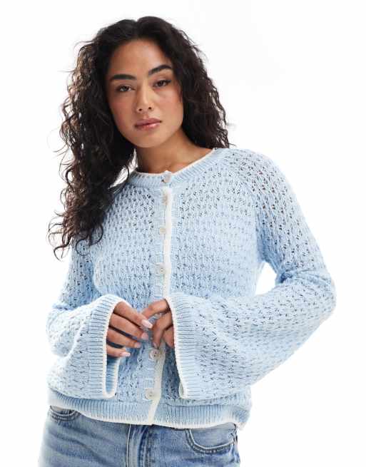 ASOS DESIGN – Hellblaue Häkel-Strickjacke mit Ziernähten im Deckenstil