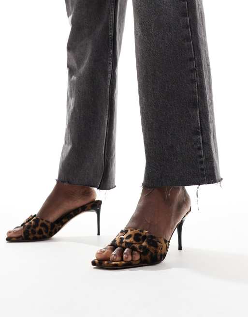 ASOS DESIGN – Hellish – Mules mit Leopardenmuster, mittelhohem Absatz und Schnallendetail