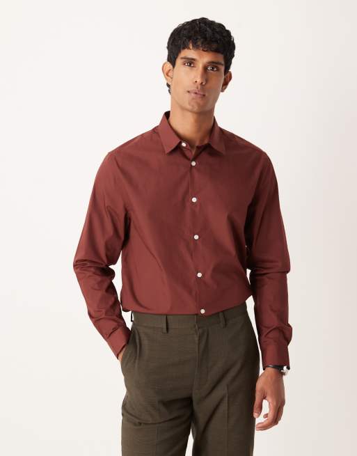ASOS DESIGN – Hemd aus Popeline in Burgunderrot mit regulärer Passform