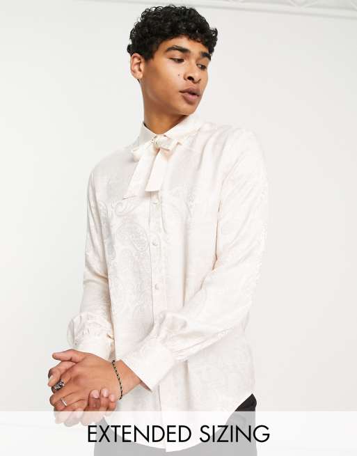 ASOS DESIGN – Hemd aus Satin-Jacquard in Blassrosa mit Bindeschleife am Halsausschnitt