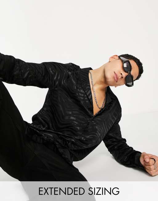 ASOS DESIGN – Hemd aus Satin mit Jacquard-Tigermuster und Reverskragen