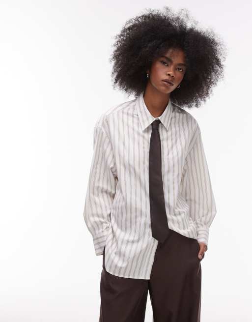 ASOS DESIGN – Hemd in Beige mit Nadelstreifen und gerafftem Detail an der Rückseite