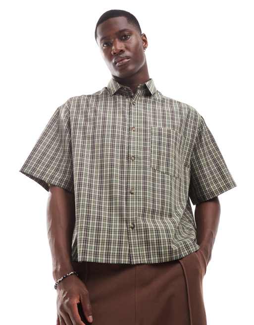 ASOS DESIGN – Hemd in Neutral mit kastigem Oversize-Schnitt und Dad-Karomuster