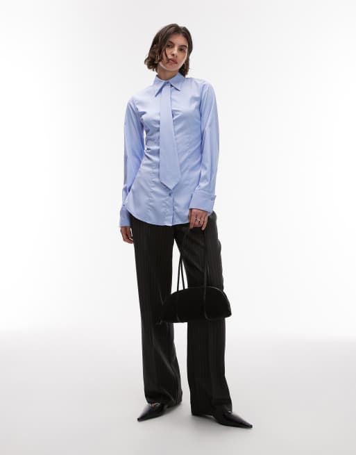 ASOS DESIGN – Hemd in Oxford-Blau mit Abnäher an der Taille