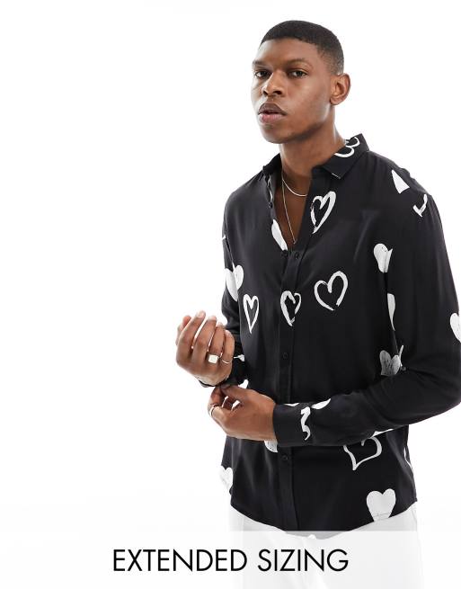 ASOS DESIGN – Hemd in Schwarz mit weißem Herzmuster
