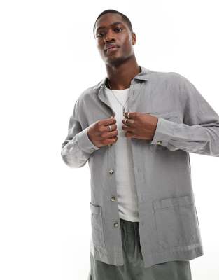 ASOS DESIGN – Hemdjacke aus Leinenmix in Grau