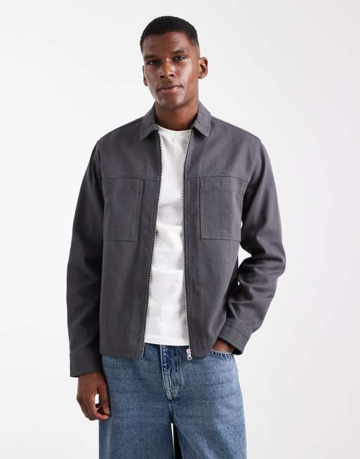 ASOS DESIGN – Hemdjacke aus schwerem Baumwolltwill in verwaschenem Schwarz mit durchgehendem Reißverschluss