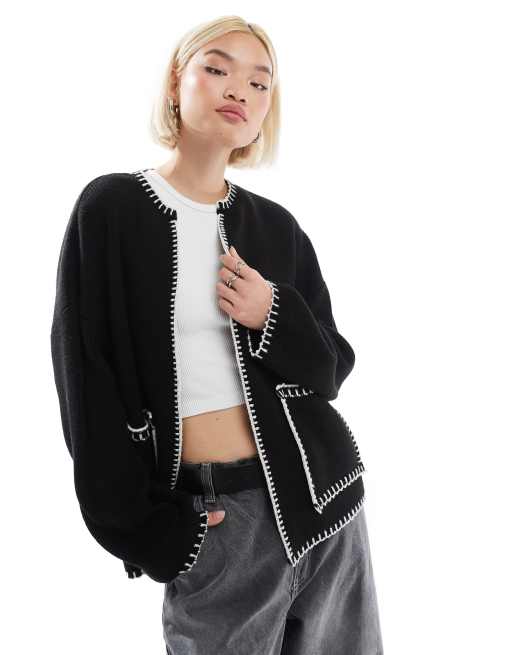 ASOS DESIGN – Hemdjacke aus Strick in Schwarz mit Languettenstich