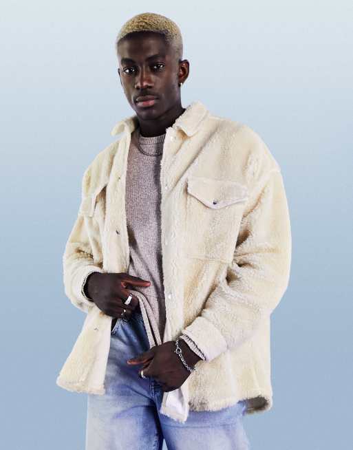 ASOS DESIGN – Hemdjacke aus Teddyfell mit Druckknöpfen