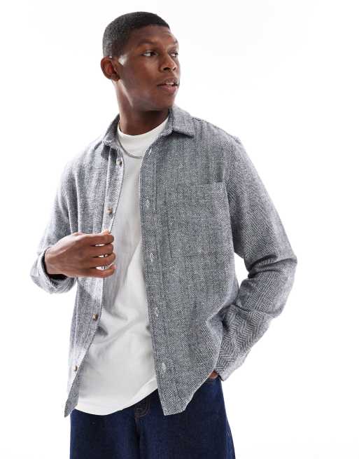 ASOS DESIGN – Hemdjacke in Marineblau mit aufgesetzten Taschen und Fischgrätmuster