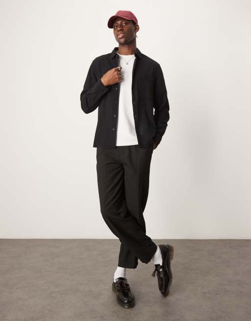 ASOS DESIGN – Hemdjacke in Schwarz mit Waffelstruktur