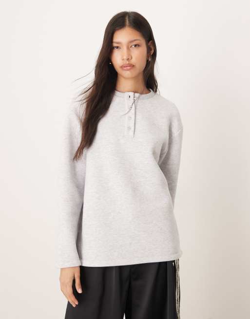 ASOS DESIGN – Henley-Sweatshirt in meliertem Grau mit Oversize-Schnitt