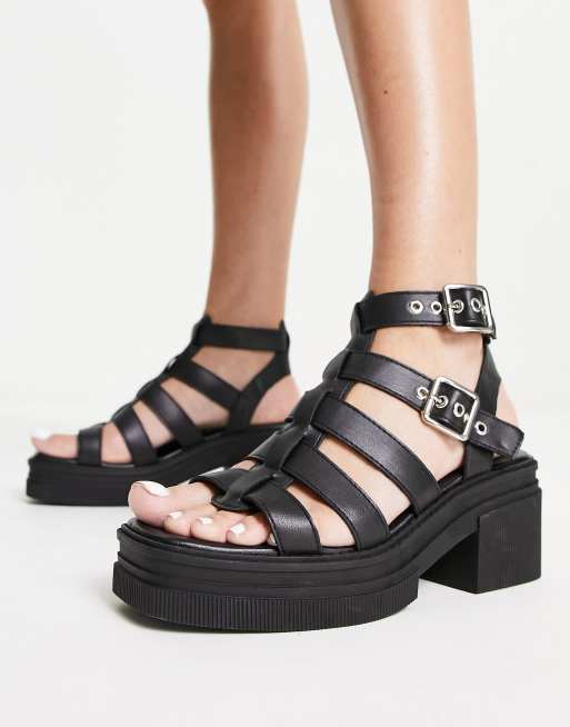 ASOS DESIGN – Highway – Klobige Sandalen mit mittelhohem Absatz in Schwarz