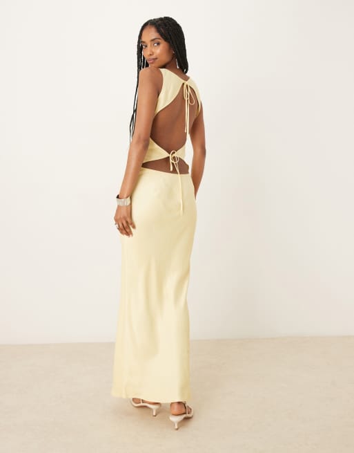 ASOS DESIGN – Hinten gebundenes Satinkleid in Buttermilchgelb mit U-Boot-Ausschnitt