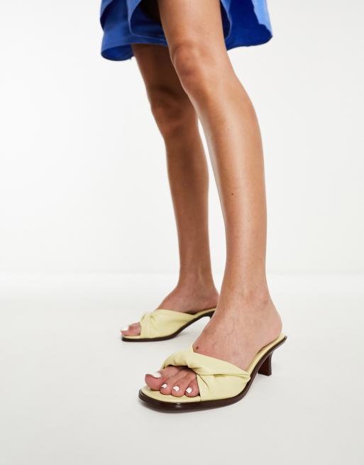ASOS DESIGN – Hither – Mules in Zitronengelb mit mittelhohem Absatz und gedrehtem Design