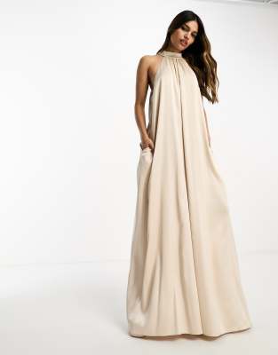 ASOS DESIGN – Hochgeschlossener Jumpsuit in Champagner