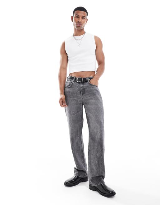 ASOS DESIGN – Hochgeschlossenes, geripptes Muskel-Trägertop in Weiß mit kurzem Schnitt
