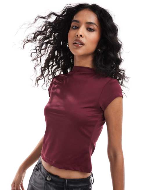 ASOS DESIGN – Hochgeschlossenes Oberteil in Weinrot mit Rückenausschnitt
